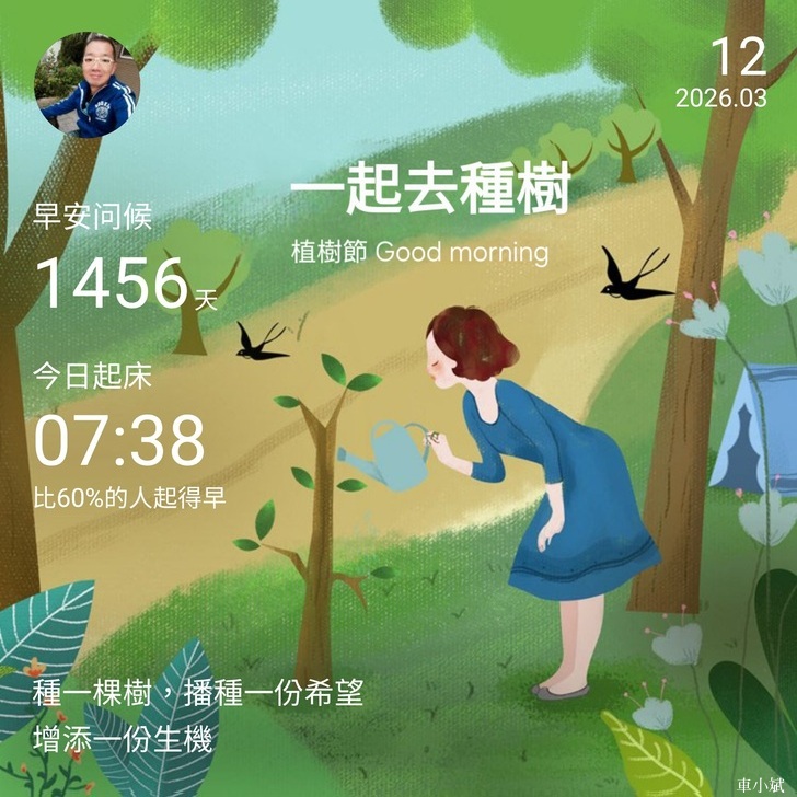 ⬆️早安打卡圖,2026.03.12,種一棵樹,播種一份希望,增添一份生機