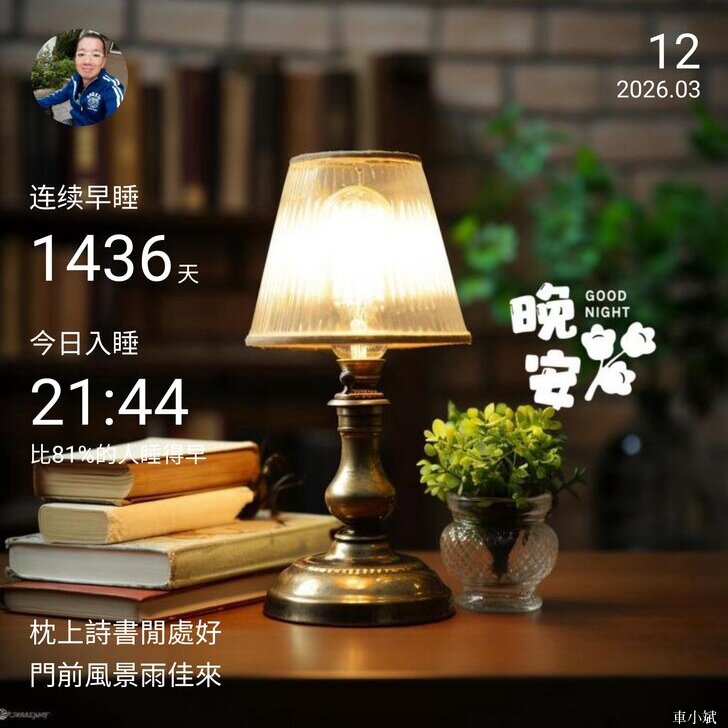 ⬆️晚安打卡圖,2026.03.12,枕上詩書閒處好,門前風景雨佳來