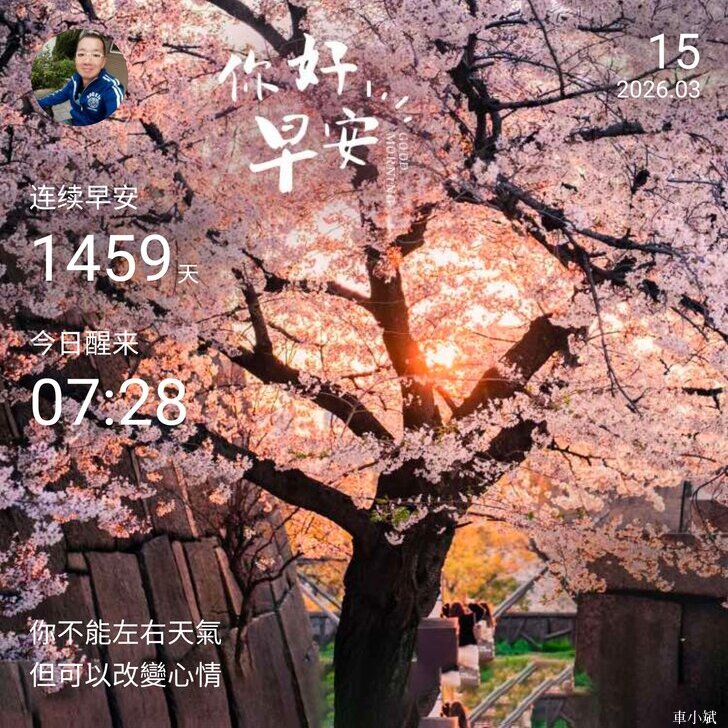 ⬆️早安打卡圖,2026.03.15,你不能左右天氣,但可以改變心情