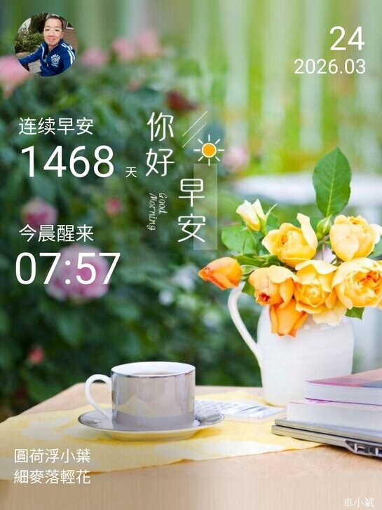 ⬆️早安打卡圖,2026.03.24,圓荷浮小葉,細麥落輕花