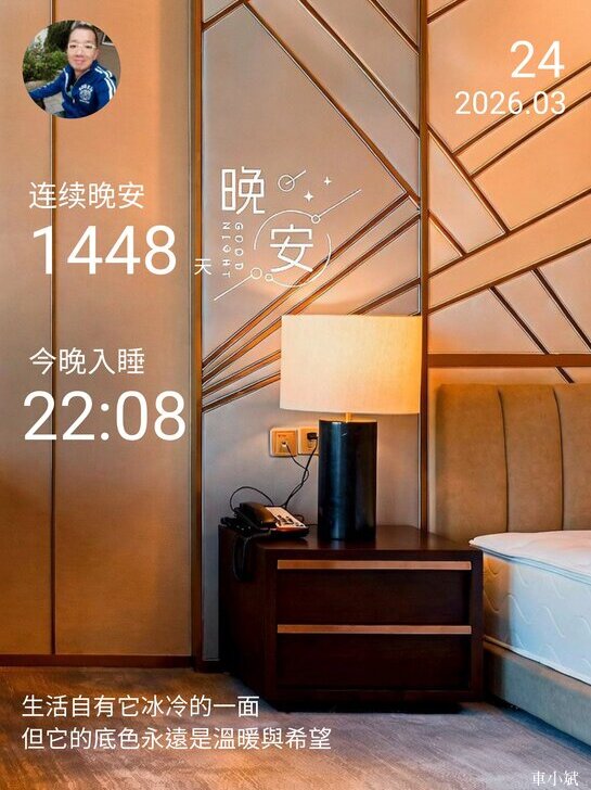 ⬆️晚安打卡圖,2026.03.24,生活自有它冰冷的一面,但它的底色永遠是溫暖與希望