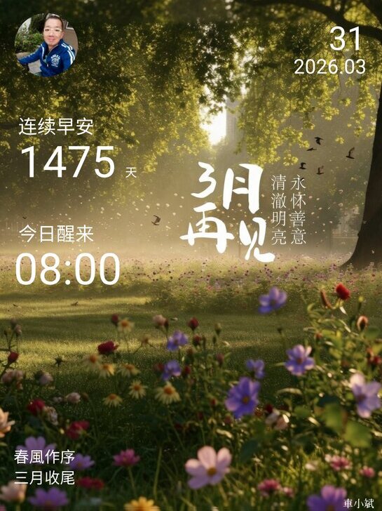 ⬆️早安打卡圖,2026.03.31,春風作序,三月收尾