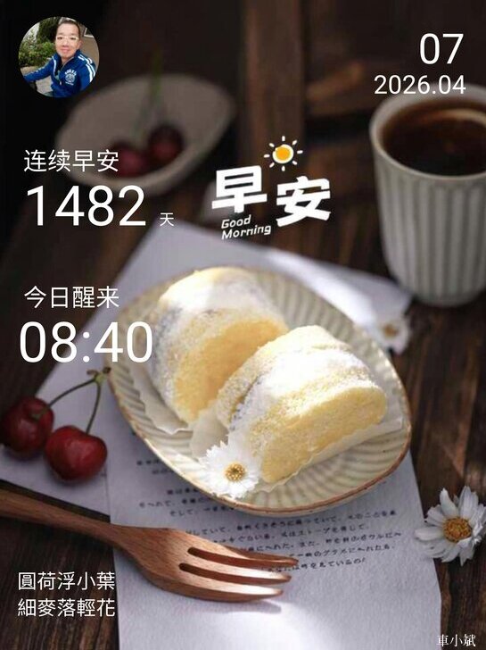 ⬆️早安打卡圖,2026.04.07,圓荷浮小葉,細麥落輕花