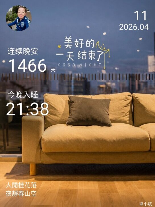 ⬆️晚安打卡圖,2026.04.11,人閒桂花落,葉靜春山空
