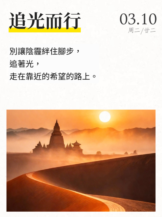 心語籤 追光而行,2026.03.10 別讓陰霾絆住腳步, 追著光, 走在靠近希望的路上。 車小斌的Instagram(小帳)➡️https://www.instagram.com/binspired...