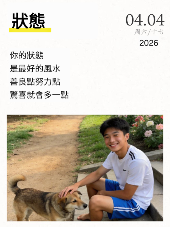 心語籤,狀態,2026.04.04 你的狀態 是最好的風水 善良點努力點 驚喜就會多一點 車小斌的Instagram(小帳)➡️https://www.instagram.com/binspiredd...
