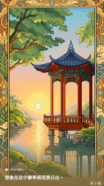 APP名稱: 數字填色 Paint by Number (by Oakever Games) 繪圖日期:2026.03.09 一個充滿無盡冒險的世界 想像在這寧靜閣亭觀賞日出