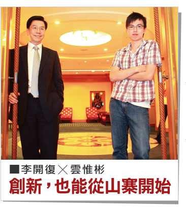 李:看來你很久沒有去中國了,中國大學生現在有股創業的狂熱,熱到我都要澆一下冷水。你問那些人為什麼要創業?他們對成功有巨大的渴望,會回答,「因為馬雲(阿里巴巴創辦人)是我的偶像、因為想成為億萬富翁、因為想創一個阿里巴巴,」我可以理解這種夢想,創業家本來就要有期望值,但是目標要踏實。相較之下,台灣青年的期望值非常健康。
