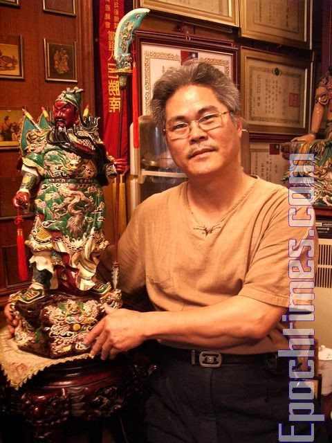 關公像氣勢磅礡,而這塊掛在呂勝南家大門口,功在獄政的匾額,也非常醒目,雖然教學傳承跟創作並行不悖,但這位堪稱大師級的人物,卻也差點遭到不景氣的金融海嘯吞沒,還有大陸產品傾銷台灣的威脅,差點關門結束營業,令人不勝唏噓。