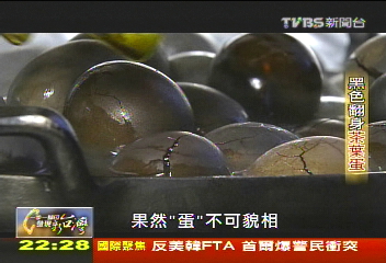 不像外觀,清一色都是黑嚕嚕,剝開後,黑白漸層交錯,每顆蛋各有各的紋路,先讓大家看到黑色外觀。何玉惠:「它絕對不一樣的啊,你可以每一顆都把它剝開看啊。」記者:「如果一樣怎麼辦?」何玉惠:「要是一樣的話,你們每個都來吃免錢。」
