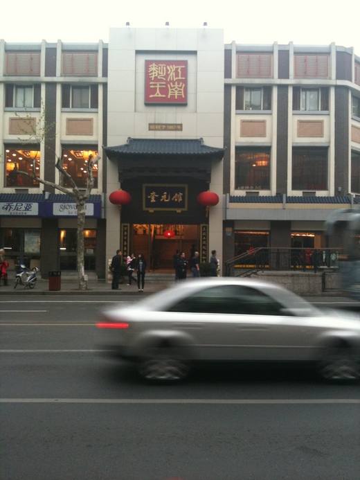 遊完西湖一路往回走回杭州車站的路上,看到位在解放路上的斗大的三個招牌叫作奎元館,門上的對聯寫著”三碗兩碗碗碗如意,萬條千條條條順心. 橫批-江南麵王!