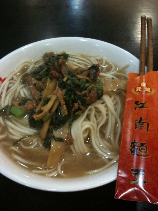 其實就是我們雪菜肉絲麵再加了筍乾吧,味道還可以麵道是非常軟爛.