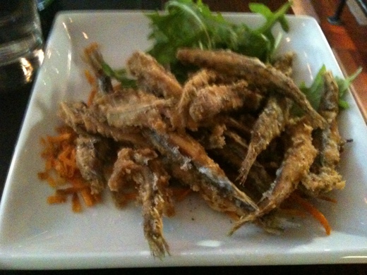 半瓶Tinto 西班牙紅酒,一瓶礦泉水,一盤炸小魚Tapas,