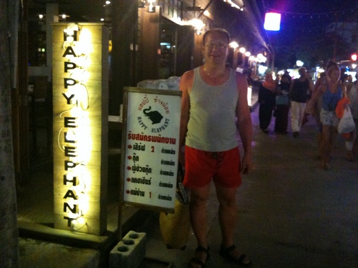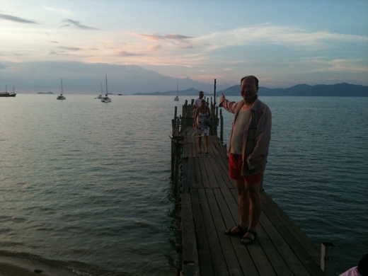水足飯飽後, 比預料更早就抵達位於BoPuht海灘上的Fisherman’s Village , 到時正好傍晚封街(每周五) . 我們在Fisherman’s Village的夕陽西下木造碼頭拍了幾張美麗的照片,一個非常簡單傳統 , 全部用木條搭建的狹窄碼頭與迷你廣場, 將延著海灘的餐廳或民宿前的街道一分為二,一邊是全賣海鮮的情調裝潢餐廳 , 另外一邊全是在賣衣物飾品或小吃等為主的攤販街。這行人街他們叫BoPuht Walking street. 結果早些吃的KFC這時發揮作用, 所以我們省了一頓海鮮大餐的費用. 回程前只吃了冰淇淋movenpick 160Bpht 還有椰子水 .