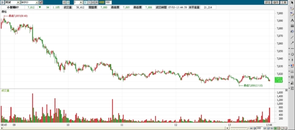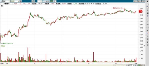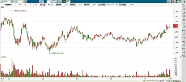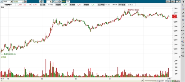 7.1 週一 FB上有人提到,價差多達200多點,可能會有大波動;今天的波動約100點,是不小,但也不到很大,只是今天走多頭非我原本預期的,我的功力還不夠....