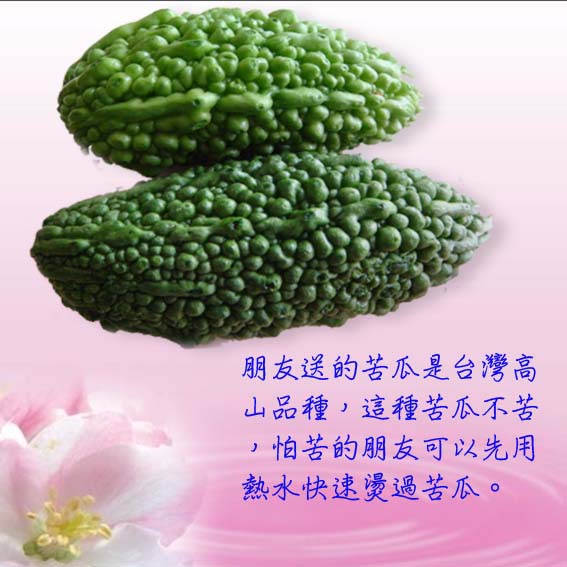 安心啦~現在台灣高山品種的苦瓜不但不苦而且很脆,它的顏色墨綠,您在台灣最幸福方便,隨時都可以買到,我在這裡是因為朋友有種才有口福耶~也許您試過後會喜歡哦,加油!