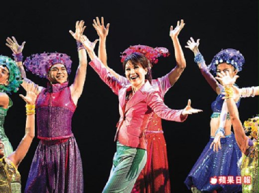 接下來的霓裳舞曲,還滿好笑的,這不是這一段第一次出現,上半場就已經見過這段舞了,每一次都可以聽到現場觀眾的笑聲,我喜歡這一段舞步簡單,演員表情呆滯的感覺,尤其是Amy臉上的笑容,天哪!我想我還真沒見過她擺出這麼「白癡」的表情,笑果達到了,這段戲其實已經成功了!