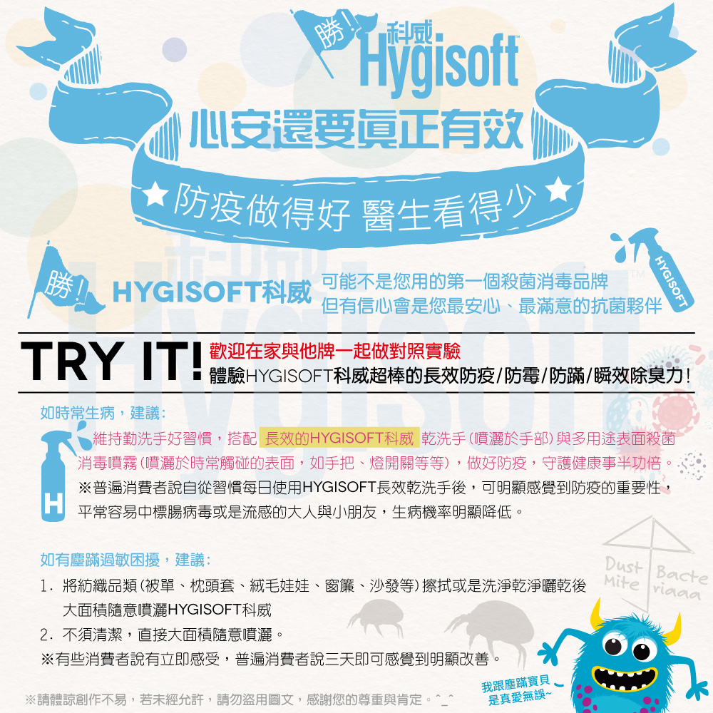 使用 【芬蘭Hygisoft科威】多用途表面殺菌消毒噴霧 - 500ml 補充瓶(防疫 殺菌消毒 防霉防蹣) 和養成良好的生活習慣和適當的運動!
