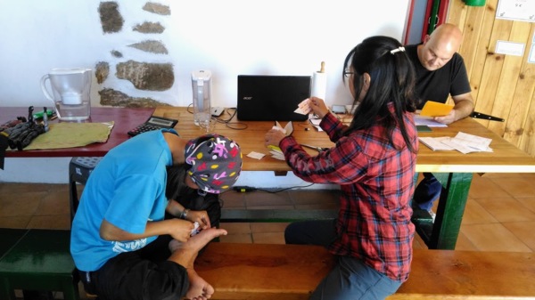 圖四、為隊友慶功,賴小姐腳上起了水泡,邀她回青旅敷藥