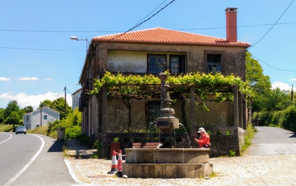 今天在路上,看到那位美國太太把腳泡在水池裡,很舒服的樣子。昨晚聚餐聯誼,聽了她的健行故事。她說:「這些年,先生和孩子都圓了夢,這次該輪到她自己來完成八百公里朝聖健行的人生夢想。」她不趕路,慢慢欣賞路上風光,沿路找人聊天,個性開朗又健談。她還告訴大家一些有關健行的浪漫故事,有人在健行途中認識伴侶而結婚,也有人每次來健行都特意去找異性朋友,結伴同行。事實上,在這條朝聖健行路上的交友聯誼真的很容易,每一聲問候 “Hola ”或“buen camino”都會得到微笑的回應。