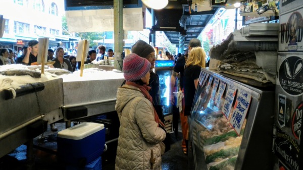 朋友為這個自駕遊行程做足了功課,預先上網租車,也設定了行車路線,第一個景點就是派克市場(Pike Place Market),這是一個必遊景點,吃喝買玩樣樣有。著名的丟魚秀不容錯過,熟練有趣的動作逗得遊客哈哈大笑。光看不買沒誠意,買了彩虹鱒魚和蝦,今晚就來一頓海鮮大餐。