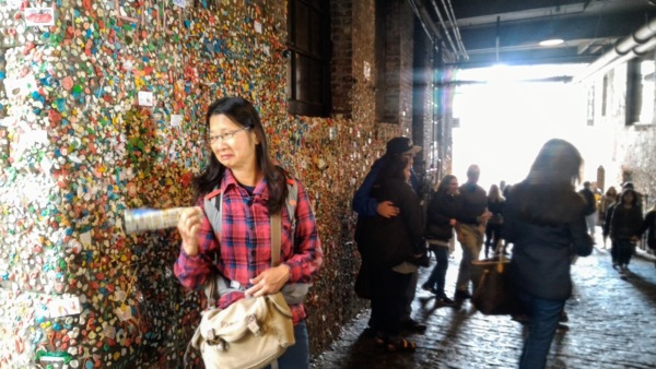 口香糖牆(Gum wall) 榮登全世界細菌最多的景點第二名。還沒走到就先聞到口香糖的味道,色彩鮮豔的牆看似有趣,想起來還蠻噁心的。很好奇這口香糖牆是怎麼形成的。原來是1990年規定看電影不准嚼口香糖,在市場戲院(Market Theater)排隊的觀眾順手將口香糖黏在牆上,於是形成此一奇觀。2015年11月花三天清除累積二十幾年的口香糖,竟達1.2公噸。誰知,過沒幾週,捧場的遊客又弄出一片鮮艷的牆,只好作罷,任它流行了。