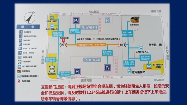 廣東自由行以高鐵和捷運為交通工具,住宿選高鐵站附近酒店。珠海、廣州、深圳之間都搭高鐵,市區就搭捷運。在珠海就覺得火車站很大,廣州南站更大,竟然花了15分鐘才走出車站。或許是第一次不熟悉,但是,廣州南站也太大了,東出口和西出口相距650公尺,走錯出口再回頭就很麻煩。詢問了服務臺、警察、路人甚至保潔阿姨,不是此路不通就是施工圍起來,眼看民宿方向的南站北路就在前方卻不敢冒然越過網約車隊走出去,最後順著網約車出站方向才走出車站,真是一個奇特的體驗。