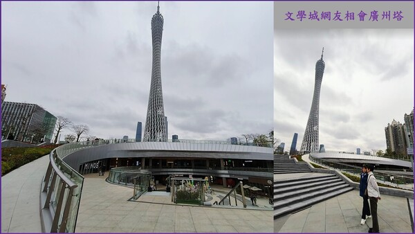 在廣州,搭捷運去廣州塔商圈的蔡瀾點心與文學城網友相會。第一次和網友會面既期待又興奮,說也奇怪,未曾謀面但第一眼就認出彼此,有種相見恨晚的感覺。很久沒吃港式點心,朋友推薦的每樣點心都好吃。廣州塔是廣州的地標建築,高度604公尺,可登塔俯瞰廣州天際線。可惜天候視線不佳,我們沒上塔參觀。