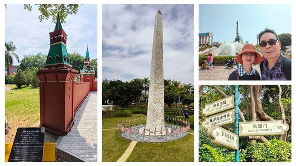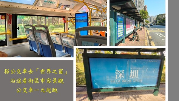 在深圳,搭公車去「世界之窗」,沿途看街區市容景觀,公交車一元起跳。「世界之窗」主題公園是深圳的旅遊熱點,園區有縮小版的世界各地名勝建築130多處,逛一圈就像世界走一圈。代表各國特色的建築在我們環遊世界時都曾經探訪過,巴黎鐵塔、倫敦大橋、紐約曼哈頓、莫斯科紅場、義大利斜塔、埃及金字塔等等…;每一個建築都有我們一段旅遊回憶,非常有趣。