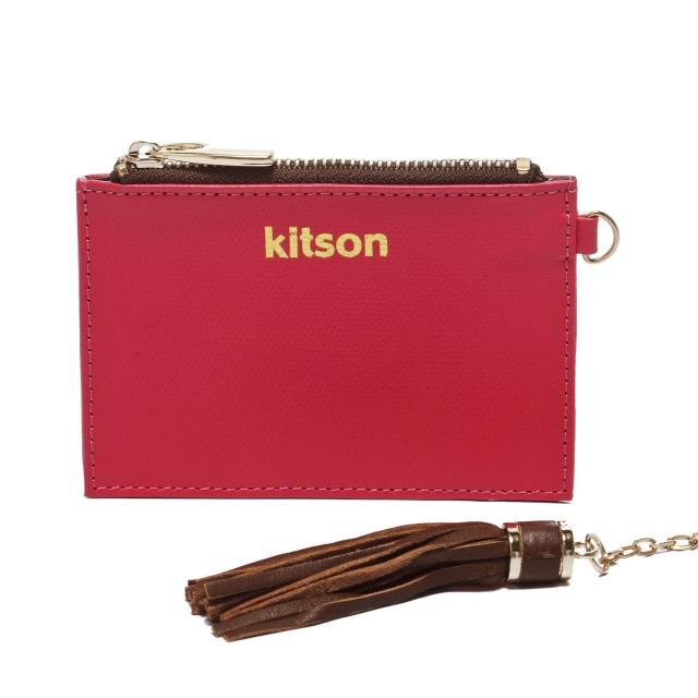| 【Kitson】流蘇Card case真皮鎖匙-零錢包(PINK)![]()