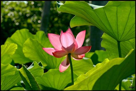 大太陽底下的荷花,與清晨的荷花迥然不同