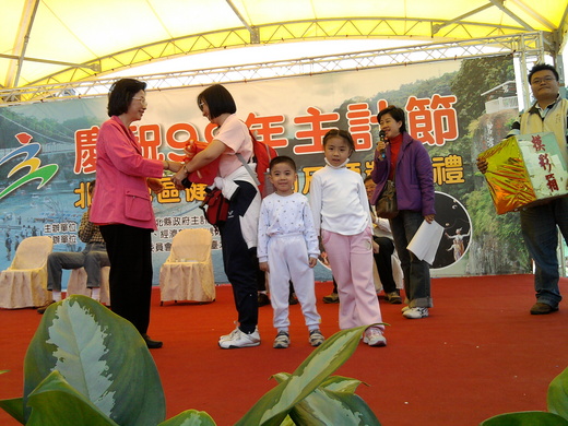 結果3/27(六)邀請羿辰跟君怡一起參加,竟然抽到主計長大獎,大家好開心,庭詠的媽咪高興地上台領獎,庭詠跑去湊熱鬧也就算了,
