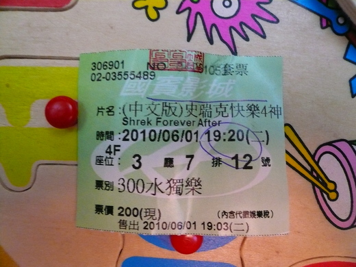 媽咪昨晚臨時打電話問到中和環球購物中心國賓戲院有晚上7:20中文版的史瑞克4快樂似神仙,
