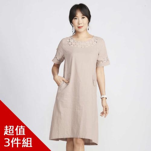 洋裝新沒得比蘭陵獨家專屬設計涼爽棉麻加大洋裝-獨-洋裝