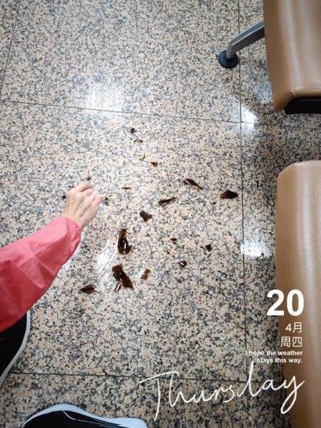 ❣可能聽到好消息後,大放鬆了,竟然!在倫哥幫我批價時,我的酒精瓶自動地滑手掉滿地。趕請志工大哥幫忙協助清理(玻璃危險),飛常抱歉;也妃常感謝工作人員的辛勞❣