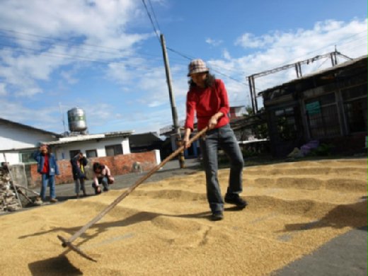 在一鏟一鏟之間,金黃稻穀隨之起舞,陽光的能量正包覆在一顆顆的米粒上。