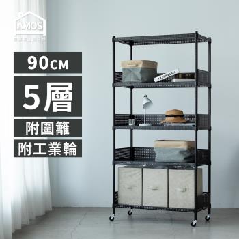 【Amos】超穩耐重鐵力士91x46x187五層增高置物架/收納層架+4組圍籬|置物架/層架推薦