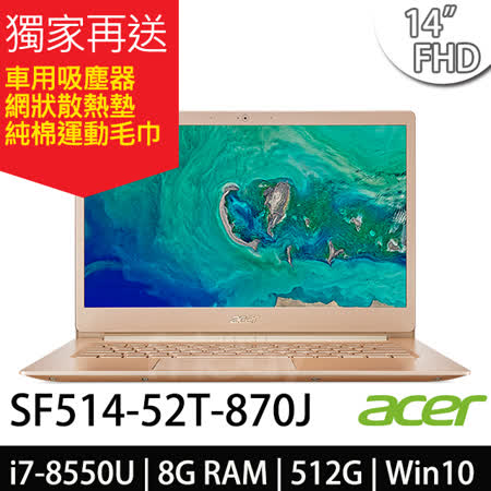 CJSCOPE 喜傑獅Acer SF514-52T-870J 14吋FHD/i7-8550U/512GB SSD 金色 輕薄筆電-加碼送14吋AC立扇(鑑賞期後貨)