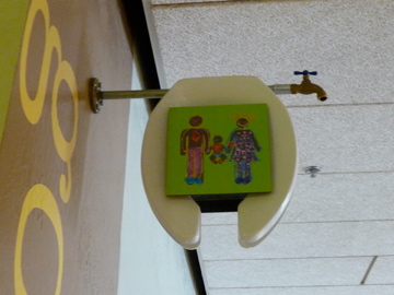 第一張照片攝於鳳凰城兒童館,館方把馬桶坐墊高高的掛出來,你應該認得出來這地方是做什麼用的吧!