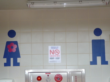 我們不好意思拍廁所內,只能讓大家看看廁所外的指示牌。如果你也有類似的照片,別客氣,放到回應上,讓我也欣賞一下!