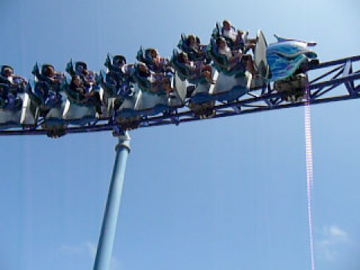 就是它,今年五月底才開幕的雲霄飛車,一直呼叫兒子、女兒再到海洋世界來玩。