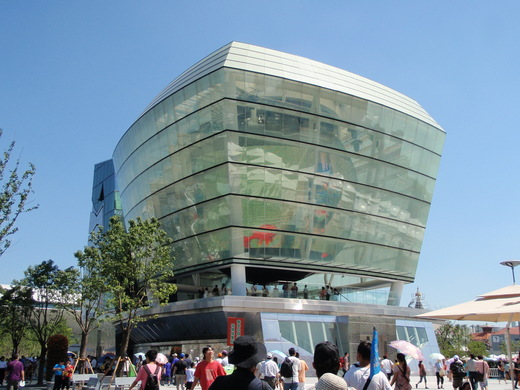 離開令人驕傲的台灣館後,大家就自由解散了,有整整一天的時間來逛這史上最大的世博展館,不過本組的團員們是一起行動,我們往巨大的中國館前進,外觀是鮮紅色的中國館,真的很壯觀,像一座倒懸的寶塔,跟它比起來其他館都顯得小多了,我想這應該就是中國人的特色吧!當然,中國館外面早已被一圈又一圈的人龍給包圍了,因此我們全組只能在底層的各省展館逛逛,在這邊發覺地主中國真的很用心,將各省的展館都弄得美輪美奐,也將各省的人文景觀、風土民情都完整的呈現了出來。不過,本次世博會有一個敗筆,就是餐廳設的座位真的不過多,不少參觀民眾皆席地而食,看著一群群坐在地上的人們,東倒西歪,真的很難看,而且東西真的有夠貴、有夠難吃,本組團員找了好久才在地下二樓找到某個角落用餐,這大概是我對上海世博會最大的不滿,也希望世博會的主辦單位應該用心好好檢討了,別讓參觀民眾敗興而歸,而本組的團員文芹也在此與一個上海GY大嬸起了小衝突,也真讓我領教了上海人的欺生與不講理。