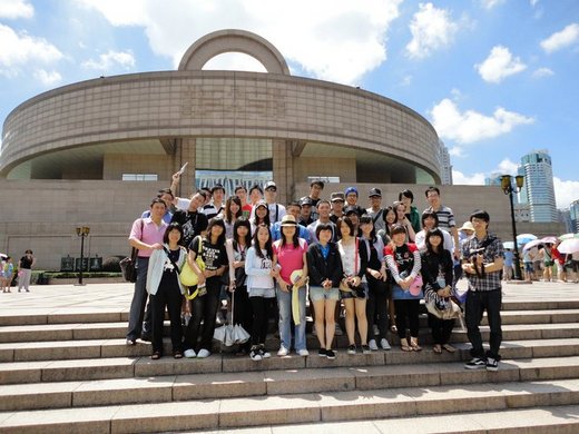 上海的最後一站是「上海博物館」,這裡的東西很多,但同樣的,時間很少,只有短短的一小時,我只能欣賞一下「錢」的展覽,我想這「錢」還真是最能夠代表這金融重鎮的上海!也稍微看了一下象徵君子的「玉」展覽,我覺得這的東西都還算不錯,但還不是真正的精品,畢竟精品都在台灣的故宮,感覺身為台灣人還挺幸福的。在外頭跟上海的市中心合個影,大家就準備上車前往下一站蘇州了。