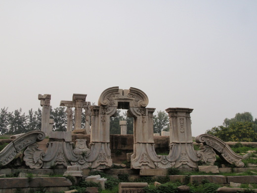 吃飽喝足了,我們前往一個以前都忘了去參觀的景點「圓明園」,這可要感謝我們小梁團長的提醒,這圓明園可是園林藝術的瑰寶,有 "萬園之園 "的美稱,原為清朝的皇家御苑。從 1709 年即開始營建,至1809 年建成,歷時一個世紀,此後的嘉慶、道光、咸豐三代仍然屢有擴建,歷時 150多年,佔地比故宮還要廣大,整座園林是一座水景園,水的面積佔了一半以上,這可是中國人五千年建築的驕傲,但毀於「很文明的」英法兩國一把火之下,真的很可惜。走在裡邊看著郎世寧設計的「大水法」、使人迷路的「萬花陣」、有十二獸首的「海晏堂」等遺跡,然而,這些都是戰火毀滅下僅存的斷垣殘壁,「我看的不是園林,我看的是遺憾」當下的我心裡是這樣想著,逛著整座圓明園,真的會不斷地有遺憾的感覺,也會不斷的感嘆著,若是當時英法這兩個國家稍微有一點良心,或許這世界又多了一座世界奇觀了。在這裡也遇到了小梁與旺儒,果然,這圓明園就是有文化、水平高的人才會來的地方。