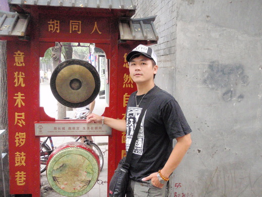 在大陸的倒數第二天了,也必須要從民宿家返回和平里大酒店了,這一天秦爸爸特地載我們與靜霓、王歡去了導遊安哥極為推荐的「南鑼鼓巷」,南鑼鼓巷是北京最古老的街區之一,也是明清兩朝的富人高級住宅區,像是僧格林沁王府、清代直隸總督榮祿府邸等都坐落在南鑼鼓巷及兩旁的八條胡同裡,而齊白石、蔣介石等也都曾在此居住停腳過,有一點類似以前的「信義區」,極有人文氣息的南鑼鼓巷現有多家酒吧、餐廳進駐,在這裡遊客可以嚐到北京地道的奶酪以及杏仁豆腐,也可以逛逛富有特色的精品店,這裡是目前北京最受中外遊客喜愛的景點之一,在這裡我買了有個小紅星的綠色小軍帽,不過這街頭與街尾的價錢可差了整整15元人民幣,我想在這邊要買任何東西之前,真要多逛個幾家,才不會當了冤大頭。這邊也收到了學妹送的「賊帥」的徽章,真想問問她們是不是跟「花」有關的那一種賊?逛了這麼久發覺這邊的店家也很酷,每一個老闆都跟我說開店時間都是隨他們起床的時間來決定,何時起來,何時開店,真的很隨性,不過真正的南鑼鼓巷都是晚上比較熱鬧,看來我只有九月再來拜訪了!