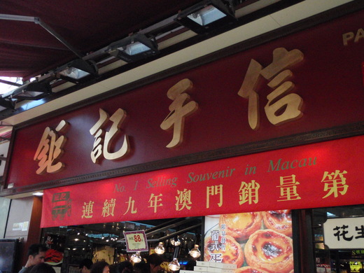 這條「賣草地街」很漂亮,從上往下看去,很有一種異國的風味,與台灣看到的老街大不相同;這條街也很熱鬧,彷彿聚集了全澳門的遊客。這條街上的「鉅記手信」很出名,擠滿了遊客,裡面賣的是各式各樣澳門的伴手禮,「鉅記」的「鳳凰捲」和肉乾非常有名,可能我是肉食動物吧!我特別喜歡這裡的肉乾,「鉅記」的肉乾有很多種類,遊客可以指著任一種肉乾無限量試吃,試吃的肉片也很大片,感覺老闆就是佛心來著的,也真誠的希望他財源廣進,最好也到台灣開分店,這樣我就可以有無限量的肉乾試吃了。