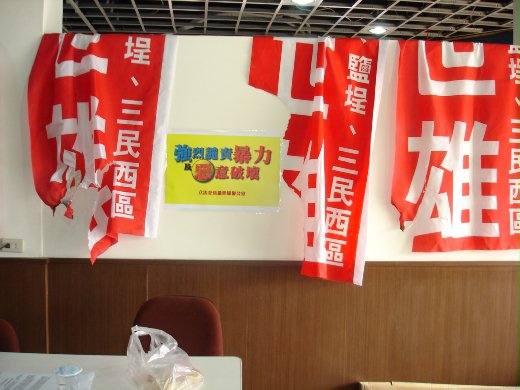 隨著立委選舉時間的逼近,各候選人彼此之間的競爭,不少對選舉熱衷的民眾情緒也隨之高漲及焦躁不安,常常會發生一些非理性的惡意搞破壞事件,拔除競選旗幟、焚毀競選旗幟、破壞競選招牌等等。立法委員羅世雄在鹽埕區內(五福四路110號、光榮街92號、60號、北端街、北斗與建國四路路口)的近20支競選旗幟,從6日晚上至今日陸續遭人破壞。羅世雄立委獲知競選旗幟遭惡意破壞,相當氣憤與難過。他表示在這選舉之際,應該秉持理性與公平競爭,不應該因政治藍綠對立的立場而互相仇視,選民也應該保持理性,不應該任意及蓄意破壞別人的競選廣告或旗幟。