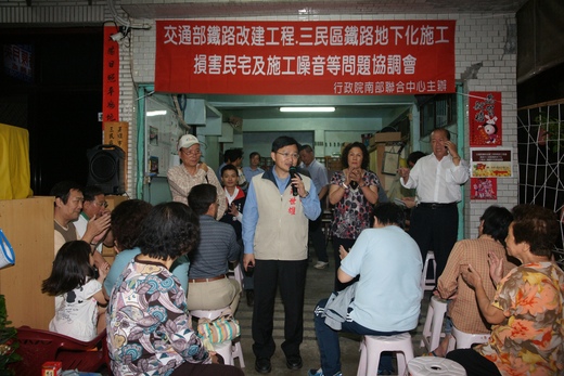 台鐵鐵路地下化工程日以繼夜施工,沿線高雄市三民區千秋里、豐裕里住戶飽受噪音之苦,部分民房龜裂。26日召開協調會,鐵路局改建工程局南部工程處副處長李懷谷表示已修復25戶房屋龜裂外,同意緊急民損或民房漏水現象等立即處理,無緊急時效者兩天內查看,十天內修復;另工程段建隔音屏減音。