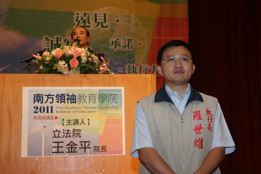 行政院南部聯合服務中心主辦的教育學院,在高市國立科工館登場;依馬總統所稱「台灣掌握知識、人才、技術與資金的國際優勢,才能在全球競爭脫穎而出」;希望集思廣益,讓台灣更具國際觀及競爭力。王金平主講「台灣的關鍵力量」;表示,立法院在台灣民主化與兩岸關係和緩發展進程中,具有歷史性地位,更在國家政治經濟發展中,同時扮演改革與穩定的關鍵角色。