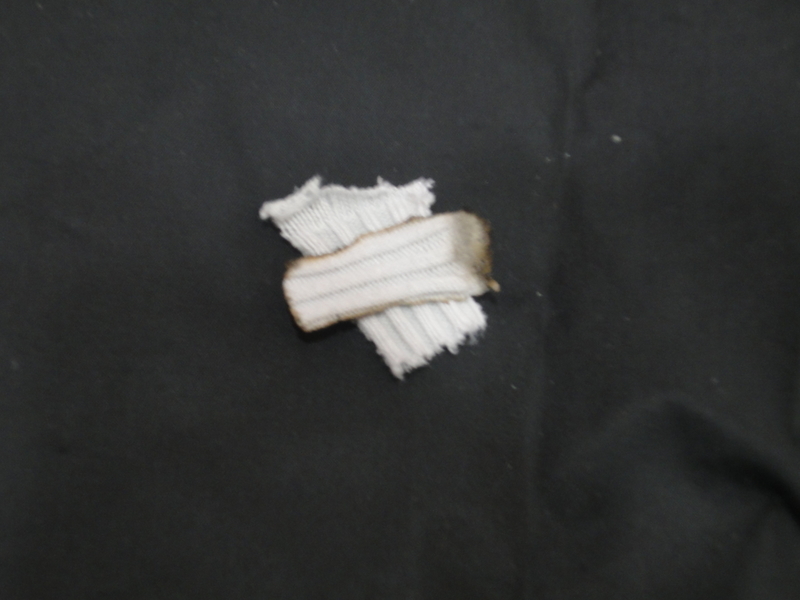 3.把小布料縫在口罩的上面的邊緣,二片小布料之間要留下一對對開的空隙,那地方就是鼻梁,也是要放雙腳釘的地方,因為口罩是雙層的,所以在縫時只讓線穿過外層,以努力維持口罩完整。